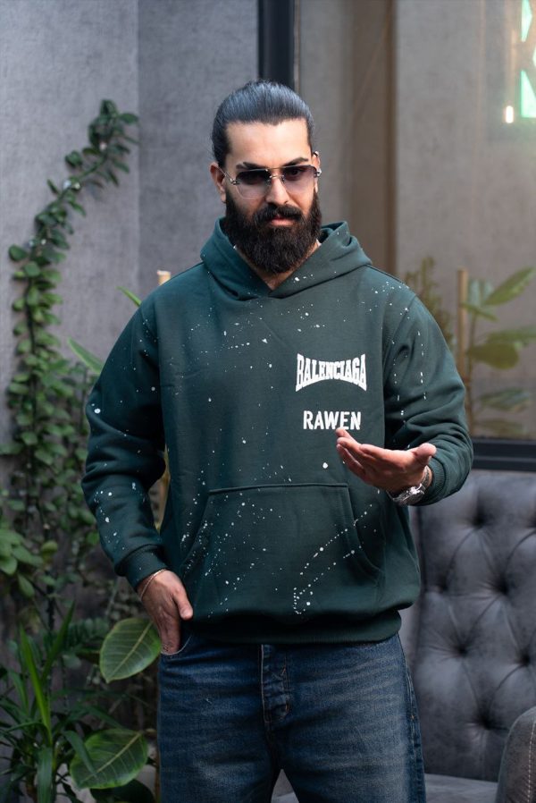 مهمترین شاخصه این هودی، طراحی هنری و مدرن آن است. طرح پاشش رنگ (Splatter) که به صورت نامنظم روی کل سطح هودی کار شده، ظاهری پویا و پرانرژی ایجاد کرده است. در کنار آن، چاپ گرافیکی باکیفیت روی سینه، جلوهای لوکس و امروزی به محصول بخشیده و آن را از مدلهای ساده کاملاً متمایز میکند. این هودی در سه رنگ کاربردی و جذاب مشکی، آبی آسمانی و سبز تیره عرضه شده تا با هر سلیقه و استایلی هماهنگ باشد.
